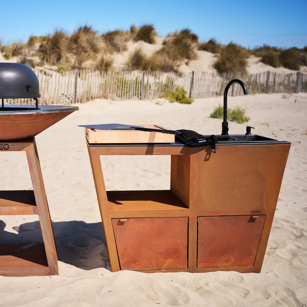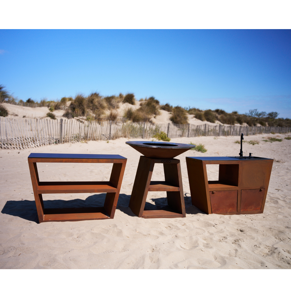 The Signature range consists of several side tables to add a countertop to your outdoor kitchen space. Our furniture with integrated sinks allows you to configure the kitchen island that suits your uses and needs. All models are available in corten steel or galvanised steel with black powder coating.