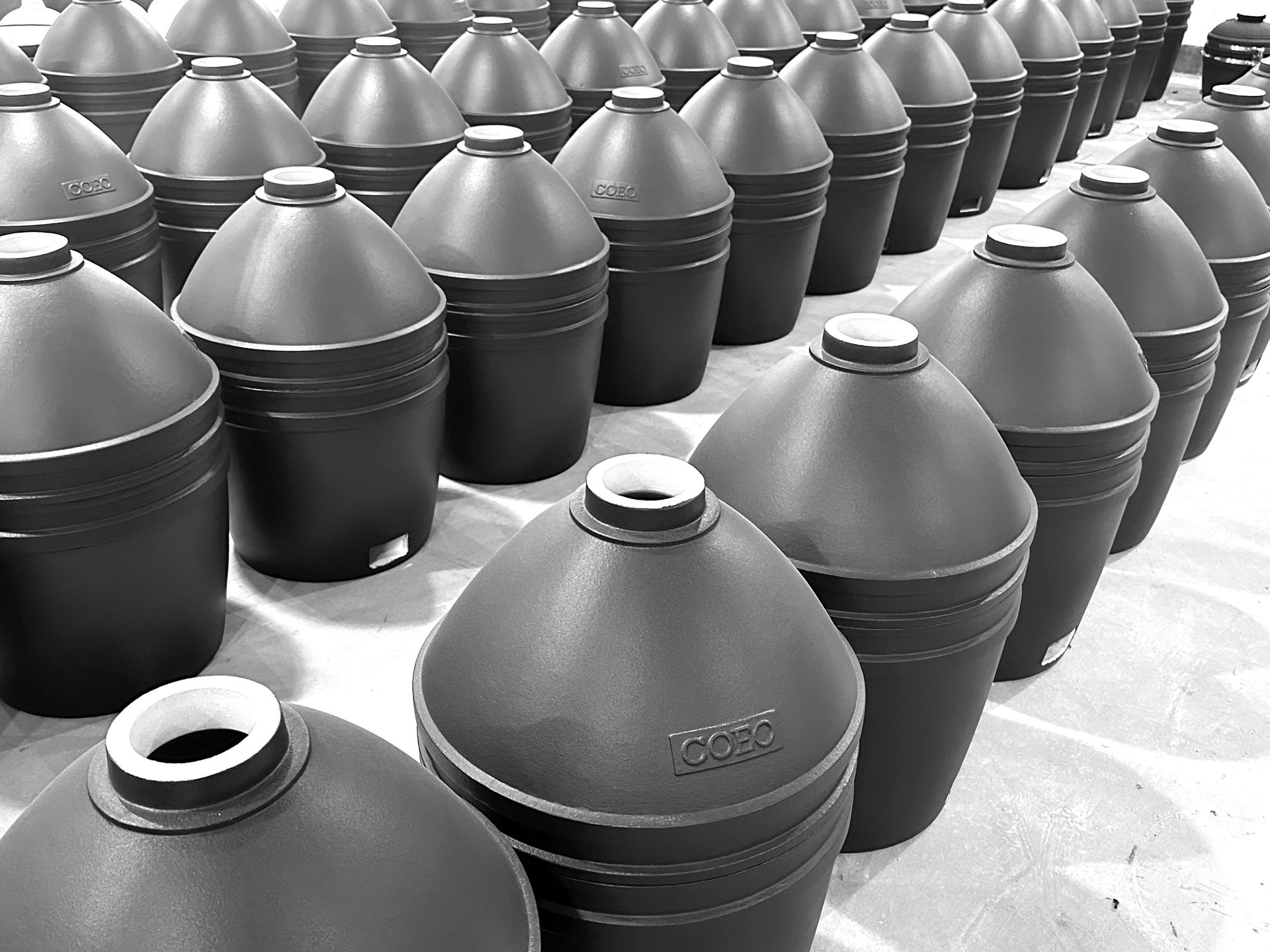 • Moulage : Les pièces principales du kamado (base, cuve, couvercle) sont moulées dans des formes spécifiques. Nous avons développés nos propres moules, uniques au Monde.