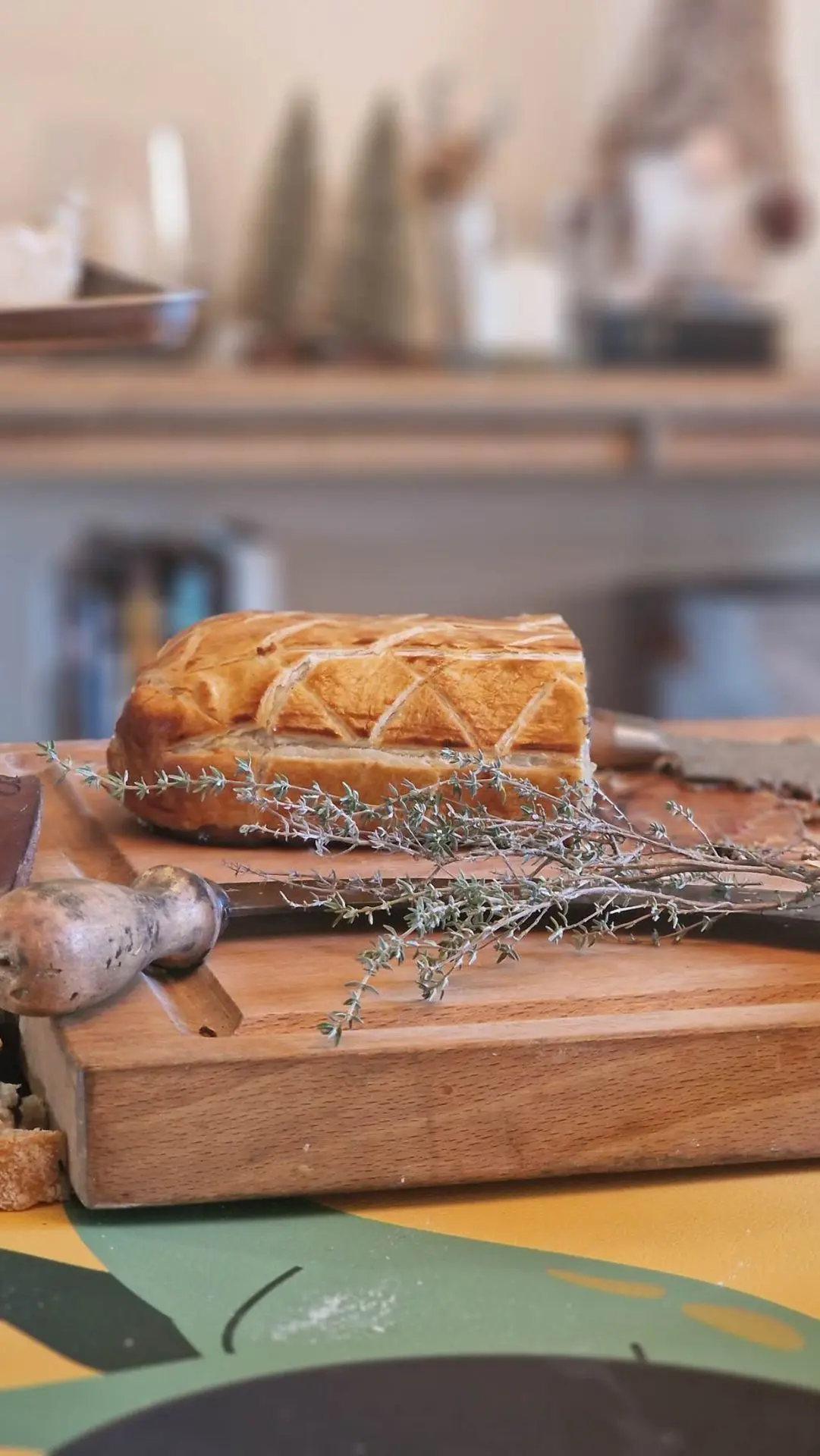 Le tout est ensuite enveloppé dans une pâte feuilletée, puis cuit au four (kamado) jusqu’à ce que la pâte soit dorée et croustillante.